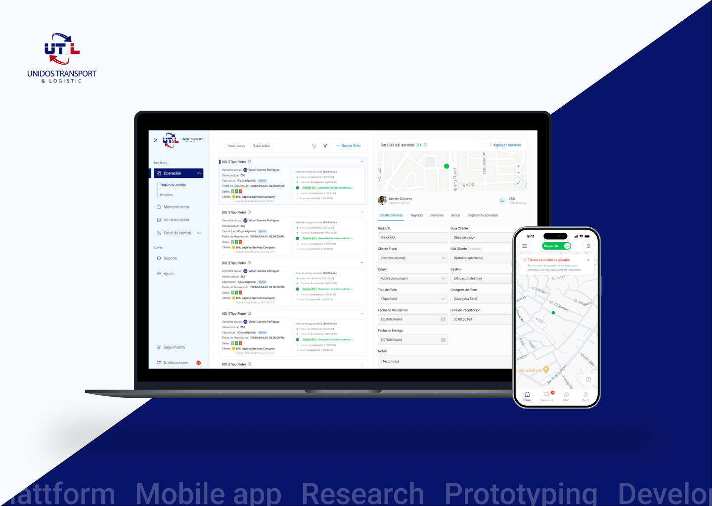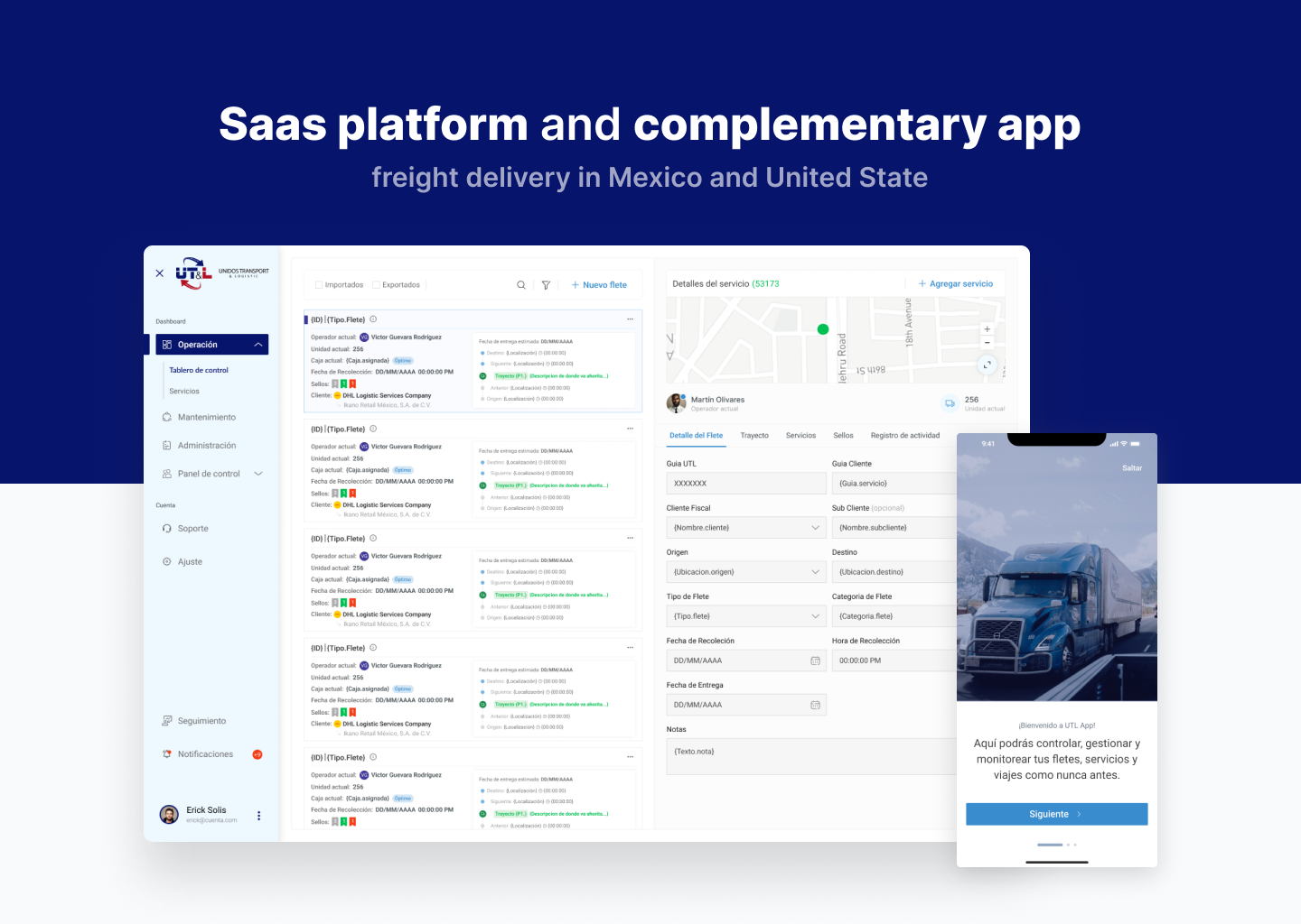 Saas platform and complementary app freight delivery in Mexico and United States.